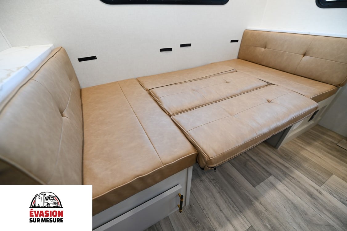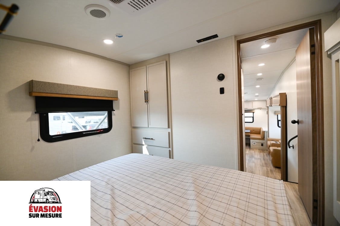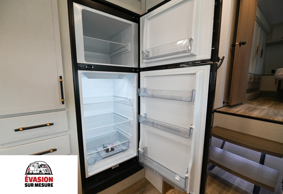 L’Astoria Fifth Wheel 250RD est conçu pour le confort et la commodité. Il dispose de sièges spacieux et d’une dinette convertible en U pour les réunions de famille. Doté d’équipements modernes comme un évier de style campagnard, un grand réfrigérateur et une luxueuse douche à l’italienne, ce camping-car est parfait pour ceux qui recherchent style et fonctionnalité sur la route. Vivez le plaisir du voyage sans sacrifier le confort de la maison avec l’Astoria 250RD.