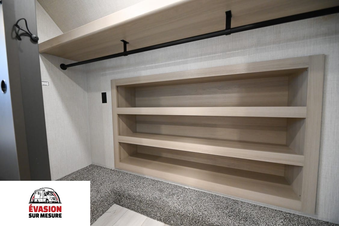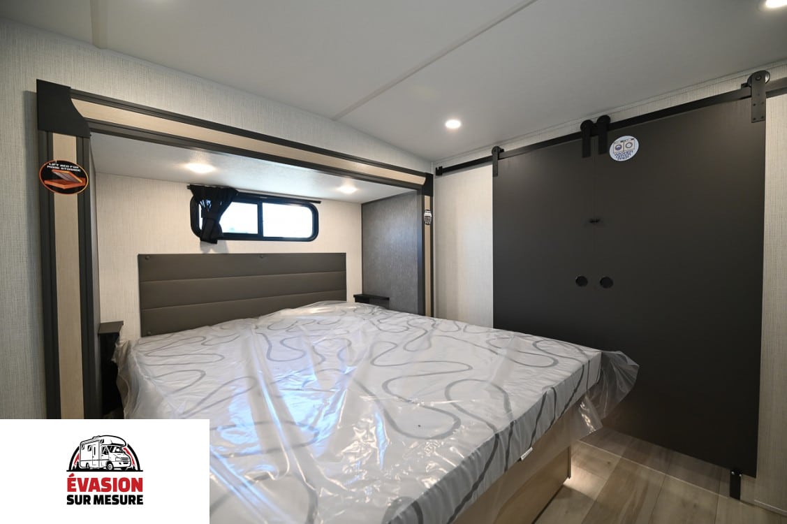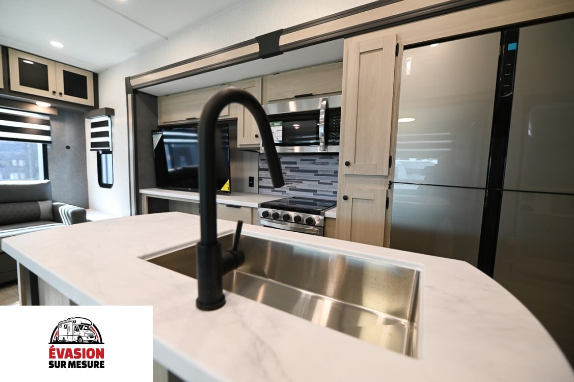 Mise à niveau automatique 4 points Deux auvents électriques (la plupart des modèles) Portes à bagages robustes à loquet Attelage de remorquage de 5 cm avec prise 4 voies (la plupart des modèles) Parois latérales : Cadre en aluminium de 5 cm collé sous vide avec isolation en mousse haute densité Toiture : Chevrons de toit arqués de 12,7 cm, espacés de 40,6 cm, avec isolation par tasseaux Planchers : Contreplaqué rainuré et langueté de 16,3 cm, avec isolation par tasseaux Caisson coulissant : Cadre en aluminium laminé de 5 cm, murs et toit avec plancher en bois de 2,5 cm Doubles aérations de toit pour un grenier respirant Membrane de toit en PVC garantie à vie Ancrages muraux avant de 5 cm avec cadre en aluminium laminé pour une résistance accrue Bandes de support EGS dans les parois latérales pour la fixation des armoires intérieures Réservoirs de rétention roto-coulés sans soudure Capot avant en fibre de verre moulé monobloc avec isolation par tasseaux Aluminium de 12,7 cm Rayon, enroulé du toit au mur latéral Préparation solaire sur le toit (pour panneau solaire de 200 W) Structure en aluminium soudée sous vide Fournaise haute performance de 35 000 BTU, de la plus grande taille de sa catégorie Chauffe-eau instantané Climatisation canalisée de 18 000 BTU avec deuxième et troisième pré-équipements Chauffe-eau instantané à la demande de 60 000 BTU Doubles évents de toit pour un grenier respirant Foyer électrique avec thermostat et télécommande Membrane de toit en PVC garantie à vie Armure sous-jacente en plastique ABS sectionné de 1,22 m x 1,82 m Service de 50 A Doubles réservoirs de propane de 9 kg Parois latérales : Isolation en blocs de mousse haute densité de 5 cm Toiture : Isolation en fibre de verre résidentielle Plancher : Isolation en fibre de verre résidentielle avec contreplaqué à rainure et languette de 1,6 cm Fournaise de 35 000 BTU Système de climatisation canalisé de 18 000 BTU, prévu pour les 2e et 3e étages Coussins chauffants 12 V pour les réservoirs de stockage Armure de dessous de cuve chauffée et fermée (panneaux de dessous de cuve sectionnés) Mise à niveau automatique 4 points Cuisinière 2-en-1 de 53 cm Micro-ondes à convection naturelle de 76 cm Réfrigérateur 12 V de 4,8 m³ Dosseret de style résidentiel Capacité d’eau douce de plus de 198 litres Dînette indépendante surélevée avec 4 chaises Stores roulants design Deux auvents électriques (la plupart des modèles) Portes à bagages robustes à loquet Éclairage à détecteur de mouvement Attelage de remorquage de 5 cm avec prise 4 voies (la plupart des modèles) Lit(s) king/queen size Grand espace de rangement Planchers faciles à nettoyer Marchepieds extra larges Plancher affleurant, cuisine coulissante en linoléum Porte d’entrée extra-large de 81 cm de large Interrupteur de déconnexion de batterie Vitres teintées Pré-équipement pour échelle arrière Douche extérieure Raccord rapide au propane Cuisinière 2 en 1 de 53 cm Micro-ondes à convection forcée de 76 cm Réfrigérateur 12 V de 4,8 m³ Dosseret de style résidentiel Dînette haute avec 4 chaises Robinet haut avec douchette extractible Garde-manger du sol au plafond Espace de vie sans moquette Foyer électrique de 5 000 BTU Grandes fenêtres ouvrantes Canapé convertible en trois et/ou fauteuils de cinéma Téléviseur LED Toilettes à chasse d’eau Douche à l’italienne avec puits de lumière Porte de douche à moustiquaire rétractable Grande armoire à pharmacie avec miroir Hauteur du pont supérieur : 1,95 m Lit King Size (N/D 402BEDS) Lit relevable assisté par vérin à gaz avec rangement Préparation lave-linge/sèche-linge Préparation TV